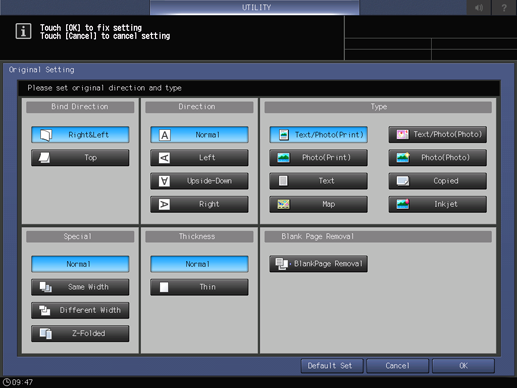 Control panel - Utility/Counter - [User Setting] - [Initial Setting] - [Store Initial Setting] - [Original Setting]