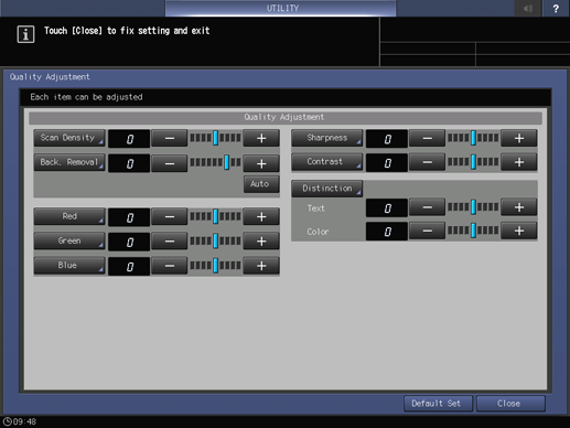 Control panel - Utility/Counter - [User Setting] - [Initial Setting] - [Store Initial Setting] - [Quality Adj.]