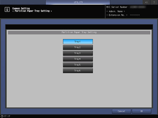 [Partition Paper] | Sets the paper tray to load partition paper into. | ||