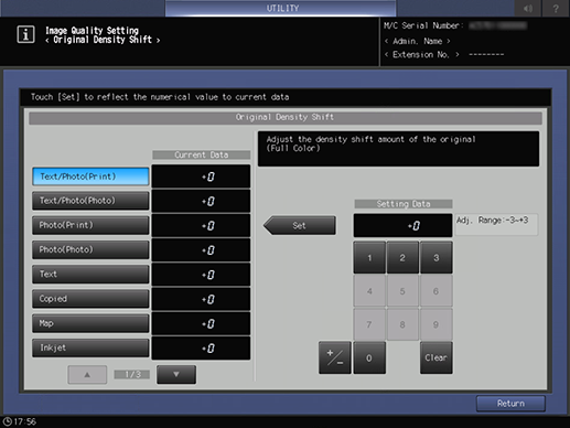 Control panel - Utility/Counter - [User Setting] - [Image Quality Setting] - [Original Density Shift]