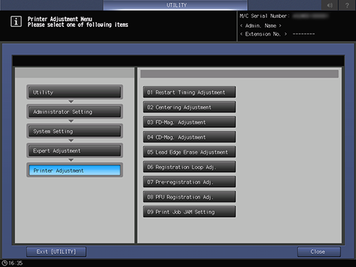 Control panel - Utility/Counter - [Administrator Setting] - [System Setting] - [Expert Adjustment] - [Printer Adjustment]