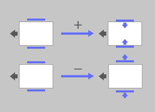 (-) To decrease the push-in amount of the alignment plate, (+) To increase the push-in amount of the alignment plate