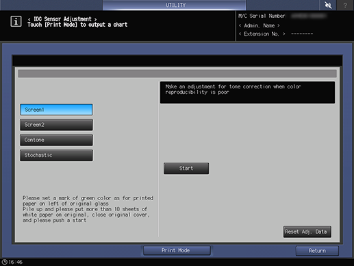 Screen access | Control panel - Utility/Counter - [Administrator Setting] - [System Setting] - [Expert Adjustment] - [Quality Adjustment] - [IDC Sensor Adjustment] | ||