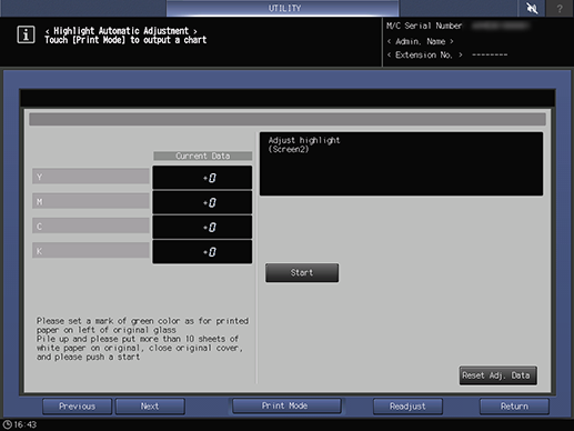 Control panel - Utility/Counter - [Administrator Setting] - [System Setting] - [Expert Adjustment] - [Quality Adjustment] - [Highlight Automatic Adj.]
