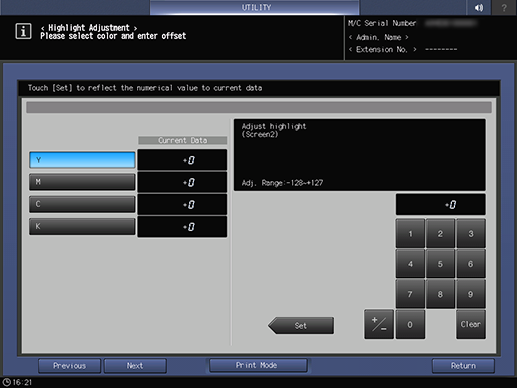 Control panel - Utility/Counter - [Administrator Setting] - [System Setting] - [Expert Adjustment] - [Quality Adjustment] - [Highlight Adjustment]