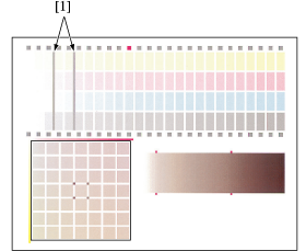 Ensure that the beginning of respective CMYK highlighted part is uniform and that it is aligned between the gray reference lines [1].