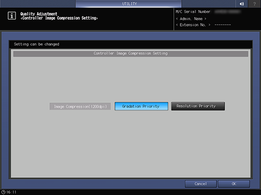 Control panel - Utility/Counter - [Administrator Setting] - [System Setting] - [Expert Adjustment] - [Quality Adjustment] - [Controller Image Comp. Set]