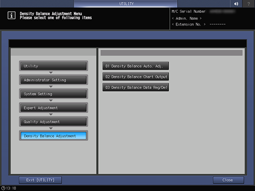 Control panel - Utility/Counter - [Administrator Setting] - [System Setting] - [Expert Adjustment] - [Quality Adjustment] - [Density Balance Adjustment]