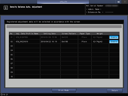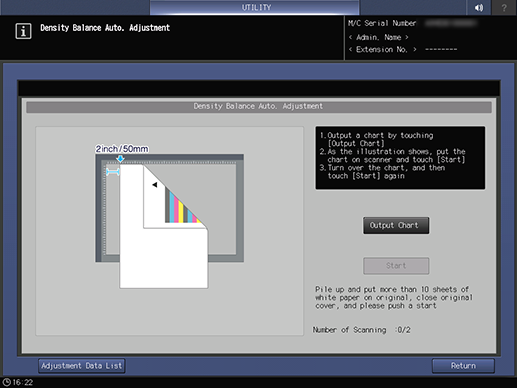 Control panel - Utility/Counter - [Administrator Setting] - [System Setting] - [Expert Adjustment] - [Quality Adjustment] - [Density Balance Adjustment] - [Density Balance Auto. Adj.]