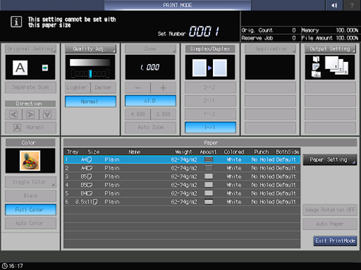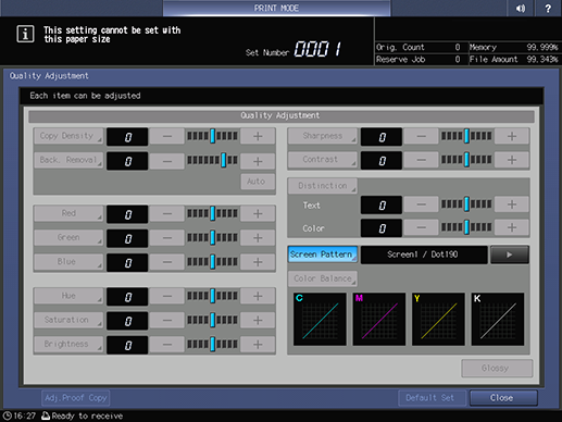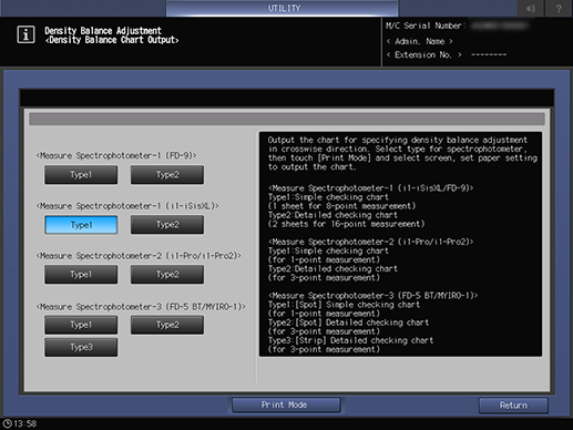Screen access | Control panel - Utility/Counter - [Administrator Setting] - [System Setting] - [Expert Adjustment] - [Quality Adjustment] - [Density Balance Adjustment] - [Density Balance Chart Output] | ||
