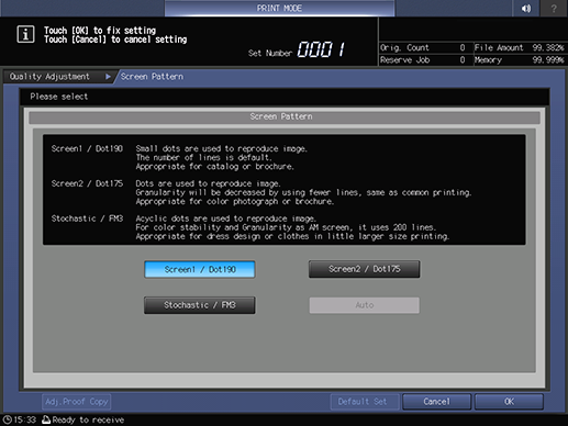 The screen type can be changed even by pressing [)] on the right of [Screen Pattern].