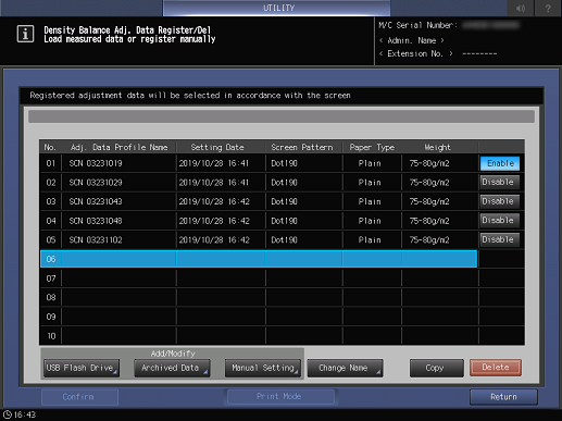 [Adj. Data Profile Name] can be changed. For details, refer to [Change Name].