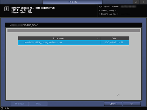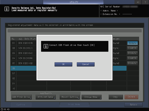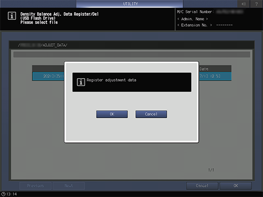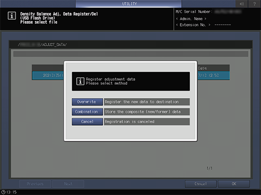 Screen access | Control panel - Utility/Counter - [Administrator Setting] - [System Setting] - [Expert Adjustment] - [Quality Adjustment] - [Density Balance Adjustment] - [Density Balance Data Reg/Del] - [USB Flash Drive] | ||