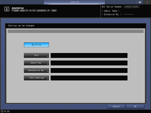 Control panel - Utility/Counter - [Administrator Setting] - [System Setting] - [Annotation Setting] - Optional stamp key - [New Register] - [Item 2]