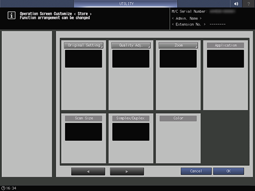 Control panel - Utility/Counter - [Administrator Setting] - [System Setting] - [Operation Screen Customize] - [Store Screen Customize Set]