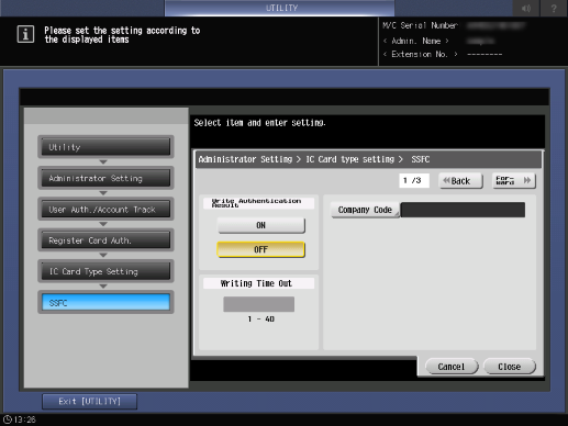 Sets in case [SSFC] is selected using [IC Card type setting].