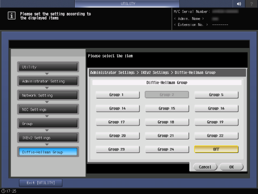 When [OFF] is selected, Diffie-Hellman Group is not set
