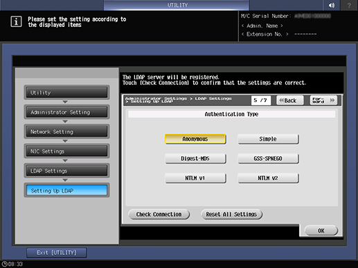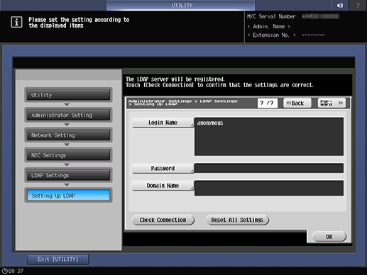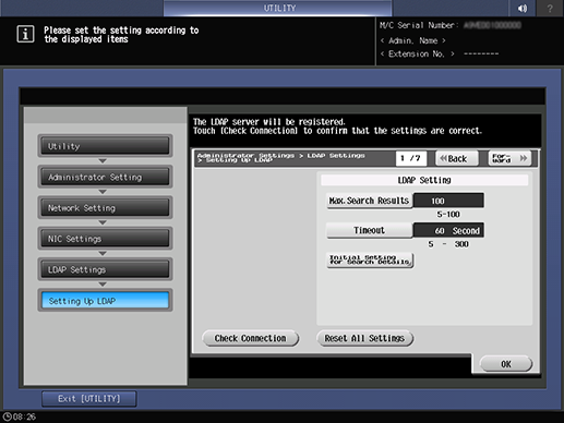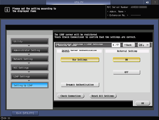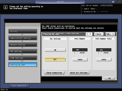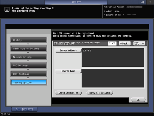 Control panel - Utility/Counter - [Administrator Setting] - [Network Setting] - [NIC Settings] - [LDAP Settings] - [Setting Up LDAP]