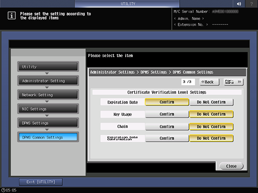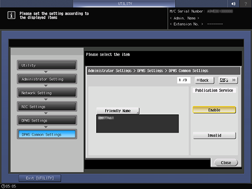 Control panel - Utility/Counter - [Administrator Setting] - [Network Setting] - [NIC Settings] - [DPWS Settings] - [DPWS Common Settings]