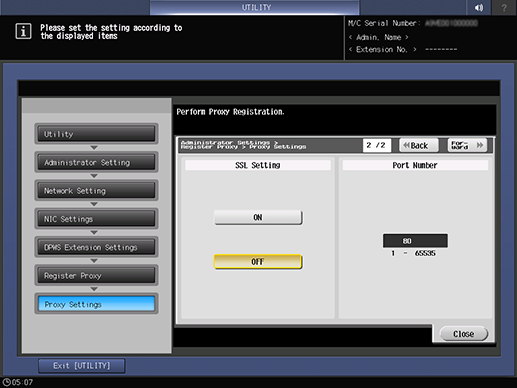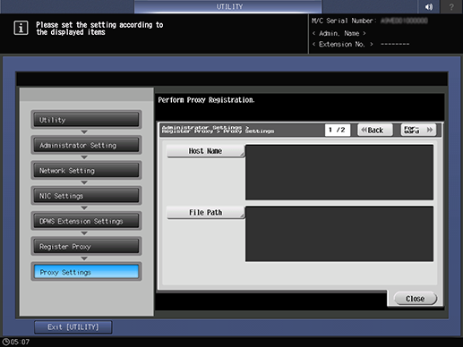 Control panel - Utility/Counter - [Administrator Setting] - [Network Setting] - [NIC Settings] - [DPWS Settings] - [DPWS Extension Settings] - [Register Proxy]
