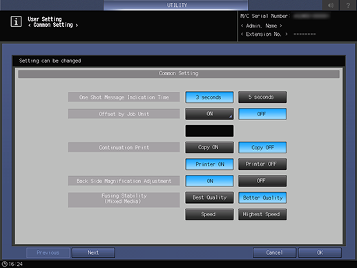 Control panel - Utility/Counter - [Administrator Setting] - [Common Setting] | |||