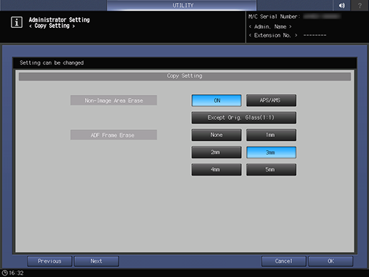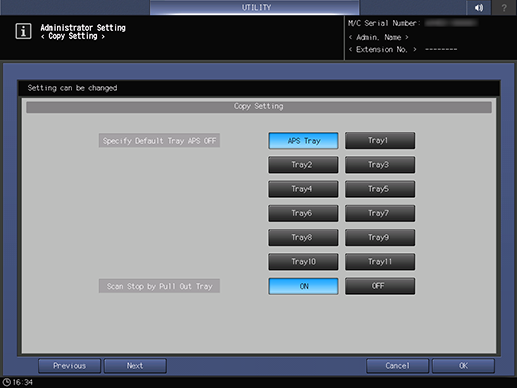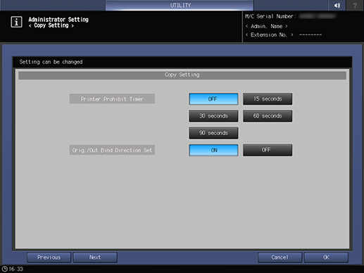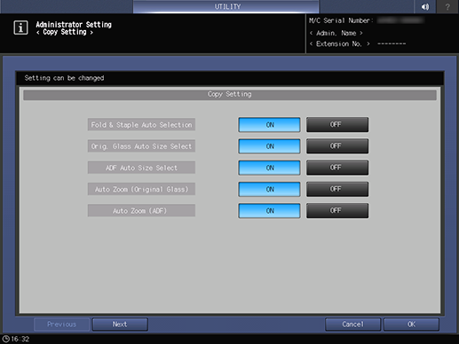 Control panel - Utility/Counter - [Administrator Setting] - [Copy Setting]