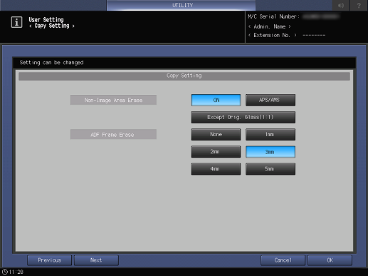 Control panel - Utility/Counter - [Administrator Setting] - [Copy Setting] | |||