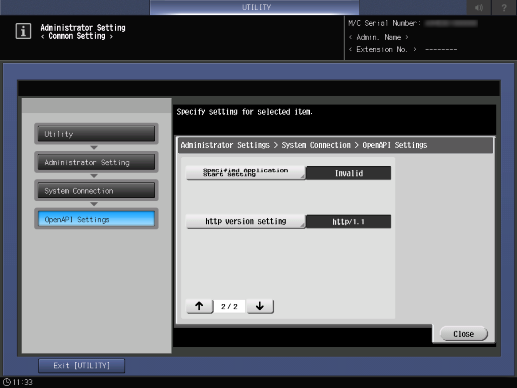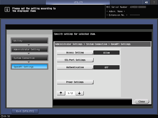 Control panel - Utility/Counter - [Administrator Setting] - [System Connection] - [OpenAPI Settings]