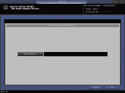 Control panel - Utility/Counter - [Administrator Setting] - [Security Setting (UK-301)] - [Web Access Password Setting]
