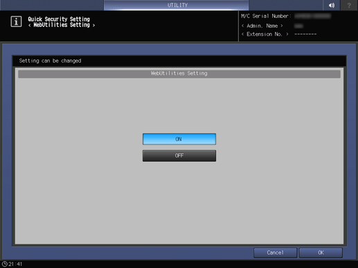 Control panel - Utility/Counter - [Quick Security Setting] - [WebUtilities Setting]