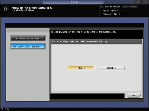 Control panel - Utility/Counter - [Quick Security Setting] - [Web Connection Setting]