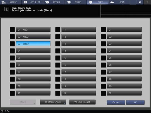The registered job conditions are recalled, and the [COPY] screen is displayed.