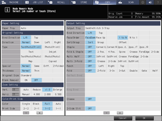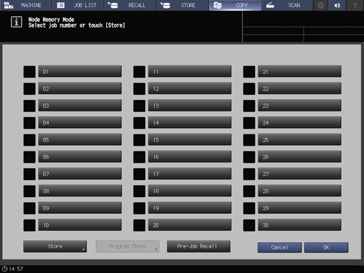 Control panel - [COPY] - Mode Memory- [Store] | ||||