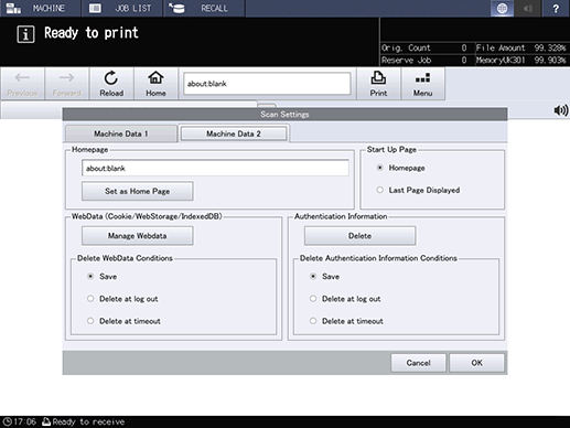 Remarks | When an optional external image controller such as the Fiery color server is mounted on this system, [Save this information] is not available. | ||