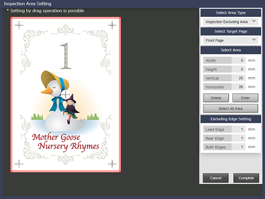 [Complete] | Sets an inspection area, and returns to the previous screen. |