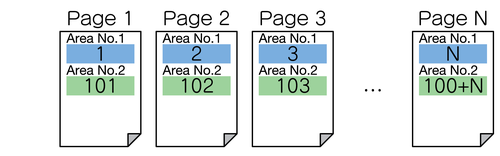[Check the data between pages] | Inspects whether the serial numbers or bar codes spanning multiple pages have been correctly changed in the order of the registered numbers. | ||
