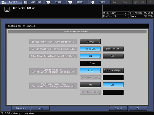 Touch panel - [MACHINE] - [IQ Function Set.]
