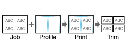Cutting or crease processing is performed based on the setting of the selected trimmer profile, and a job is printed. Create print data and trimmer profile to suit the finishing.