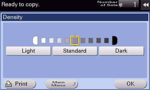 Adjust the density of the background area when copying originals with colored background (newsprints, recycle paper, etc.) or originals that are so thin that text or images on the back would be scanned.