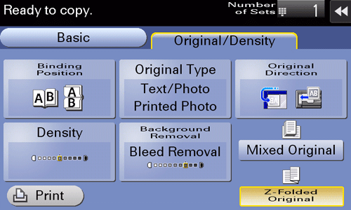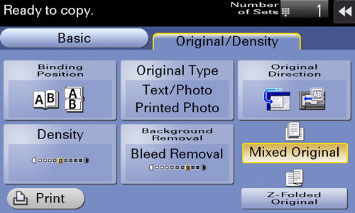 Tap [Original/Density] - [Original Direction], and specify the original loading direction.