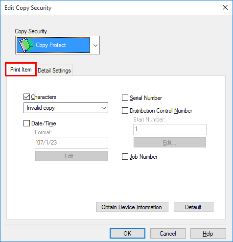In the [Stamp/Composition] tab, select the [Copy Security] check box, and then select [Copy Protect].