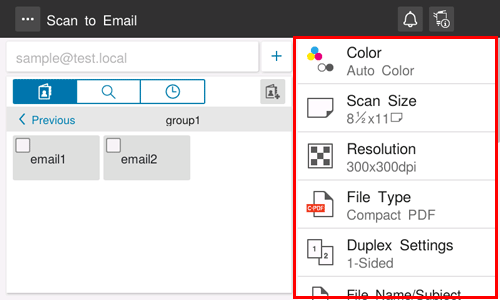 Tap [Scan to Email] on the home screen.