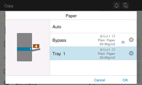 Selecting [Auto] automatically selects a tray that contains paper of the same size as the original.