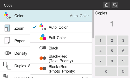 [Full Color] | Makes a copy in full color regardless of whether the scanned original is in color or in black and white. |