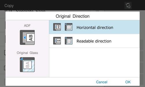 When scanning a 2-sided original, specify the original loading direction so that the vertical direction of the scanned original is set correctly.
