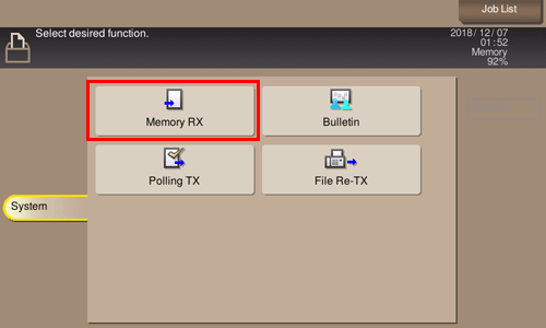 Tap [System] - [Memory RX].