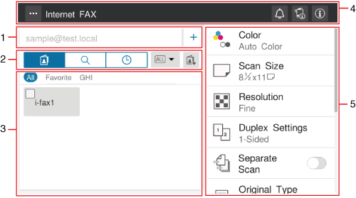 If you tap [Internet Fax] on the home screen, the main screen of Internet Fax is displayed.