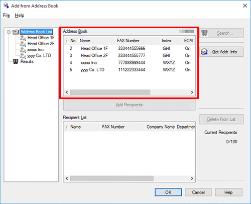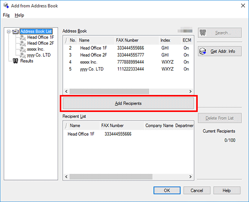 Select the recipient from the [Address Book] list, then click [Add Recipients].