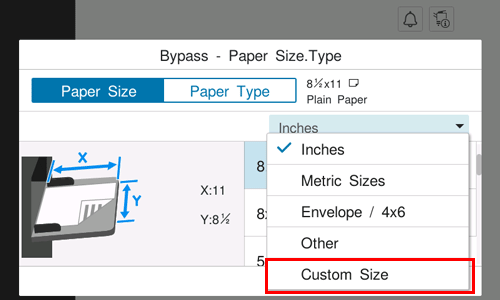 Tap [Custom Size] from the drop-down list of [Paper Size].