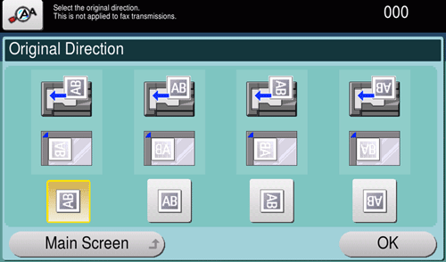 Tap [Scan Settings] - [Original Settings] - [Original Direction] to specify the original loading direction.